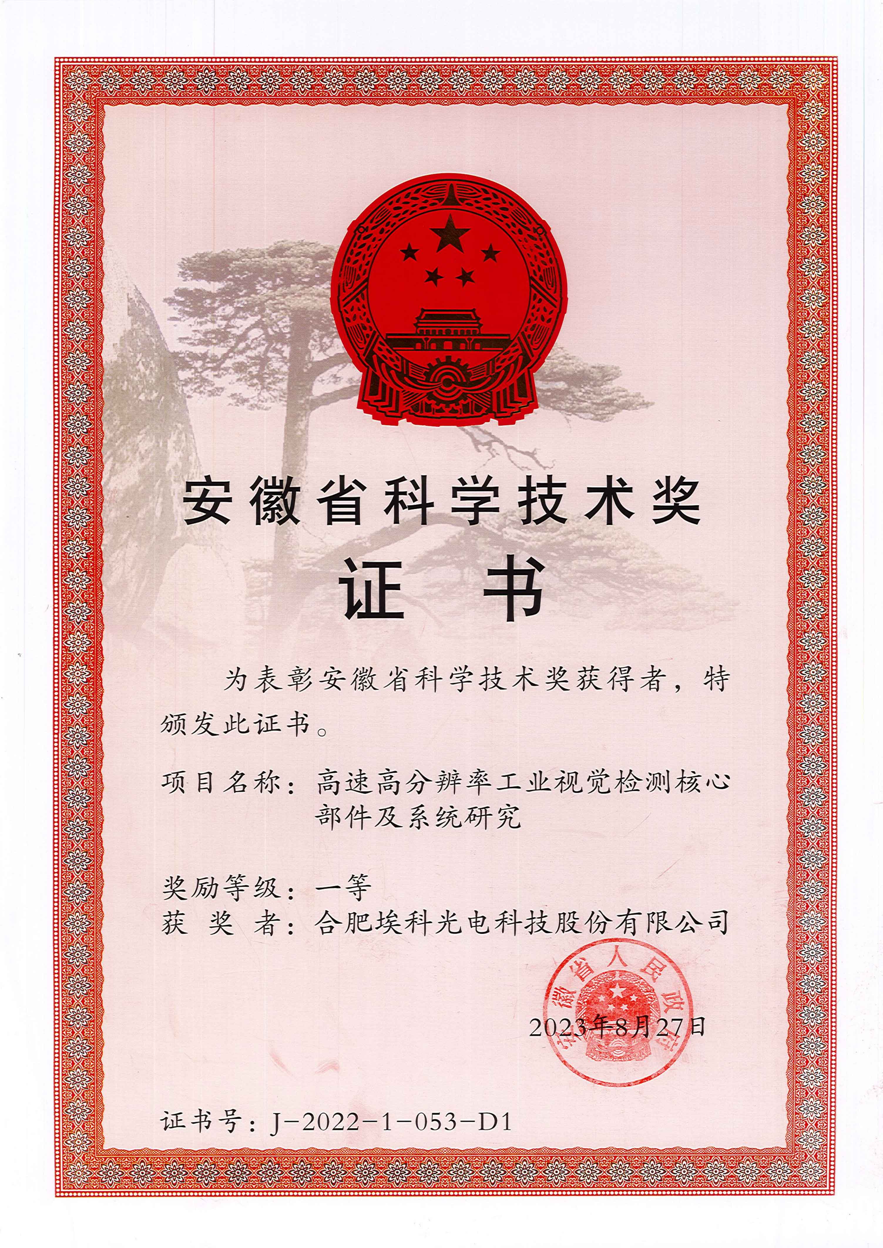 安徽省科学技术奖一等奖